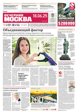 «Вечерняя Москва» — ежедневная российская вечерняя газета, старейшее из вечерних изданий в России, учрежденное в 1923 году. Выходит пять дней в неделю, кроме субботы и воскресенья. Отличается тем, что рассказывает о событиях еще не завершившегося дня. Оперативно освещает хронику и особенности жизни Москвы, охватывает все слои общества и большинство профессиональных и возрастных групп читателей.Издание представлено тремя выпусками – утренним ежедневным, вечерним (выходит три раза в неделю), еженедельным (выходит по четвергам).